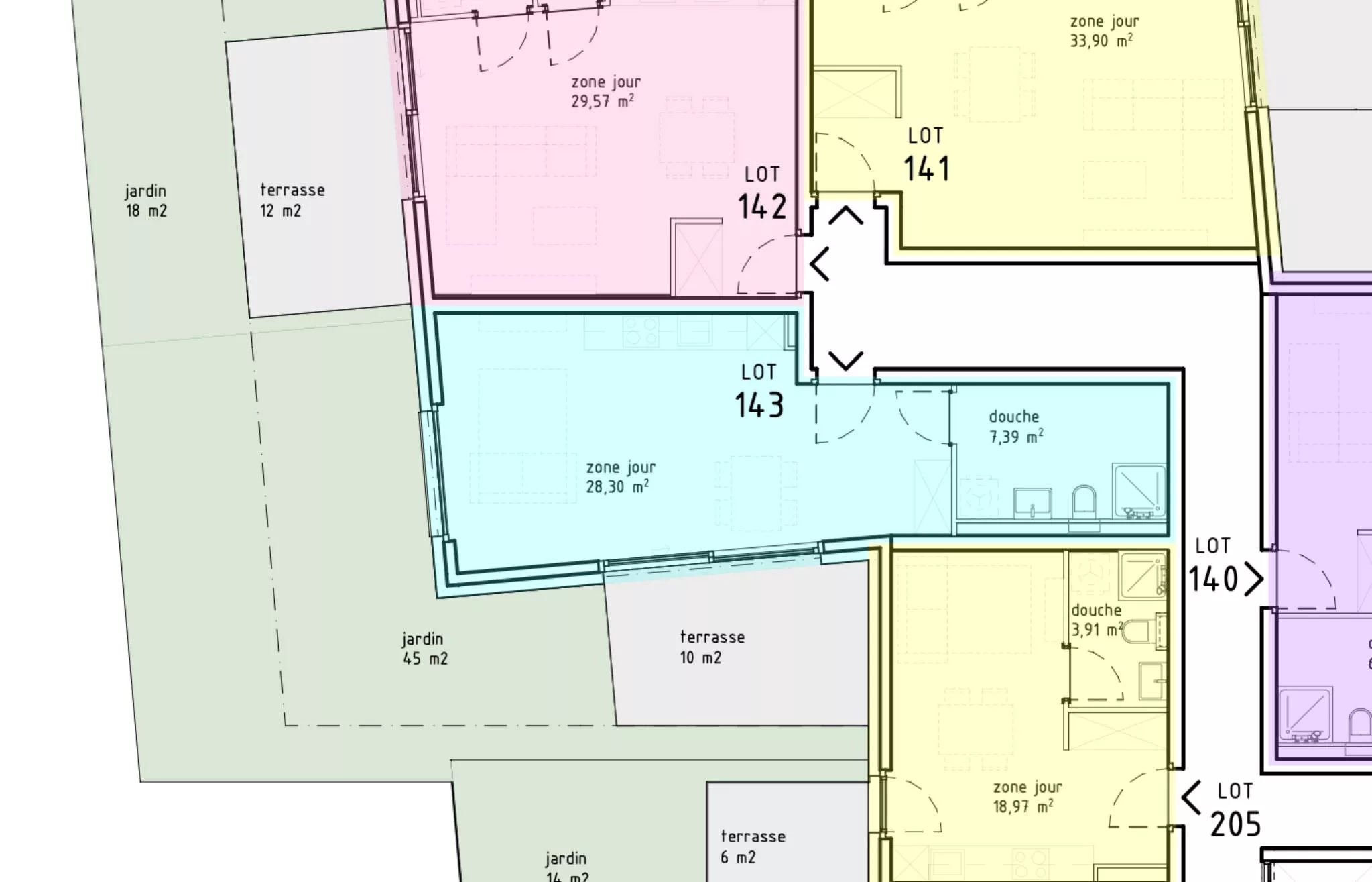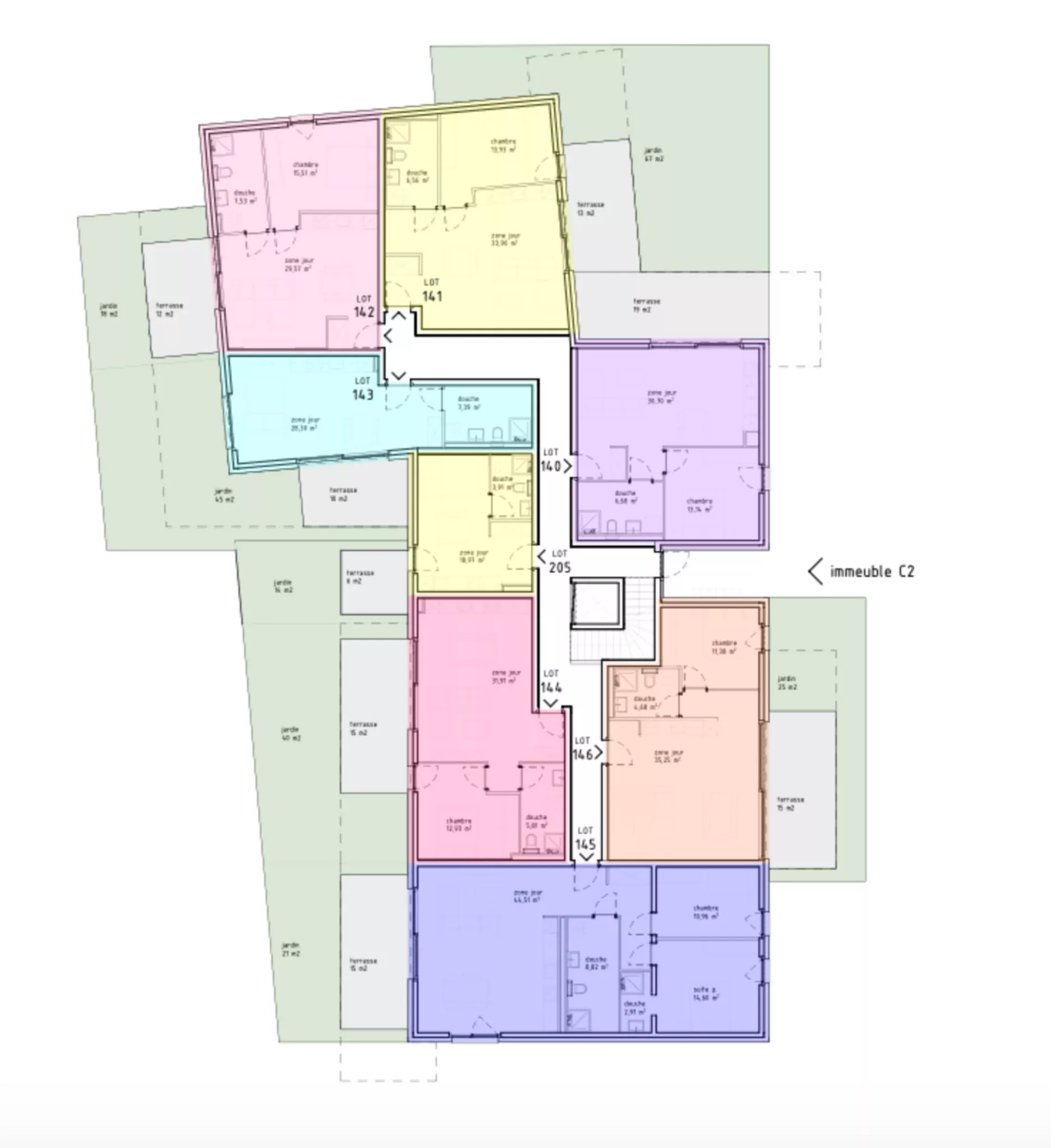 Le studio numéro 143 au bâtiment C2, bénéficie de :