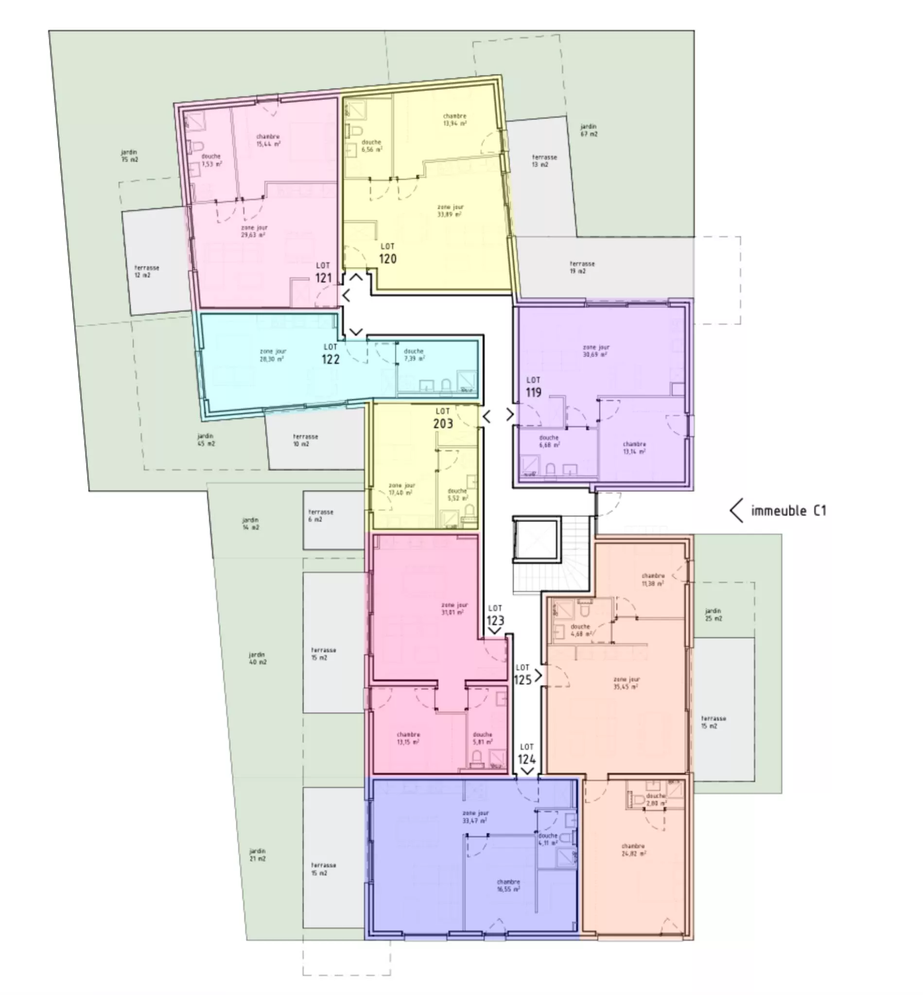L’appartement numéro 120 entrée C1 bénéficie de :