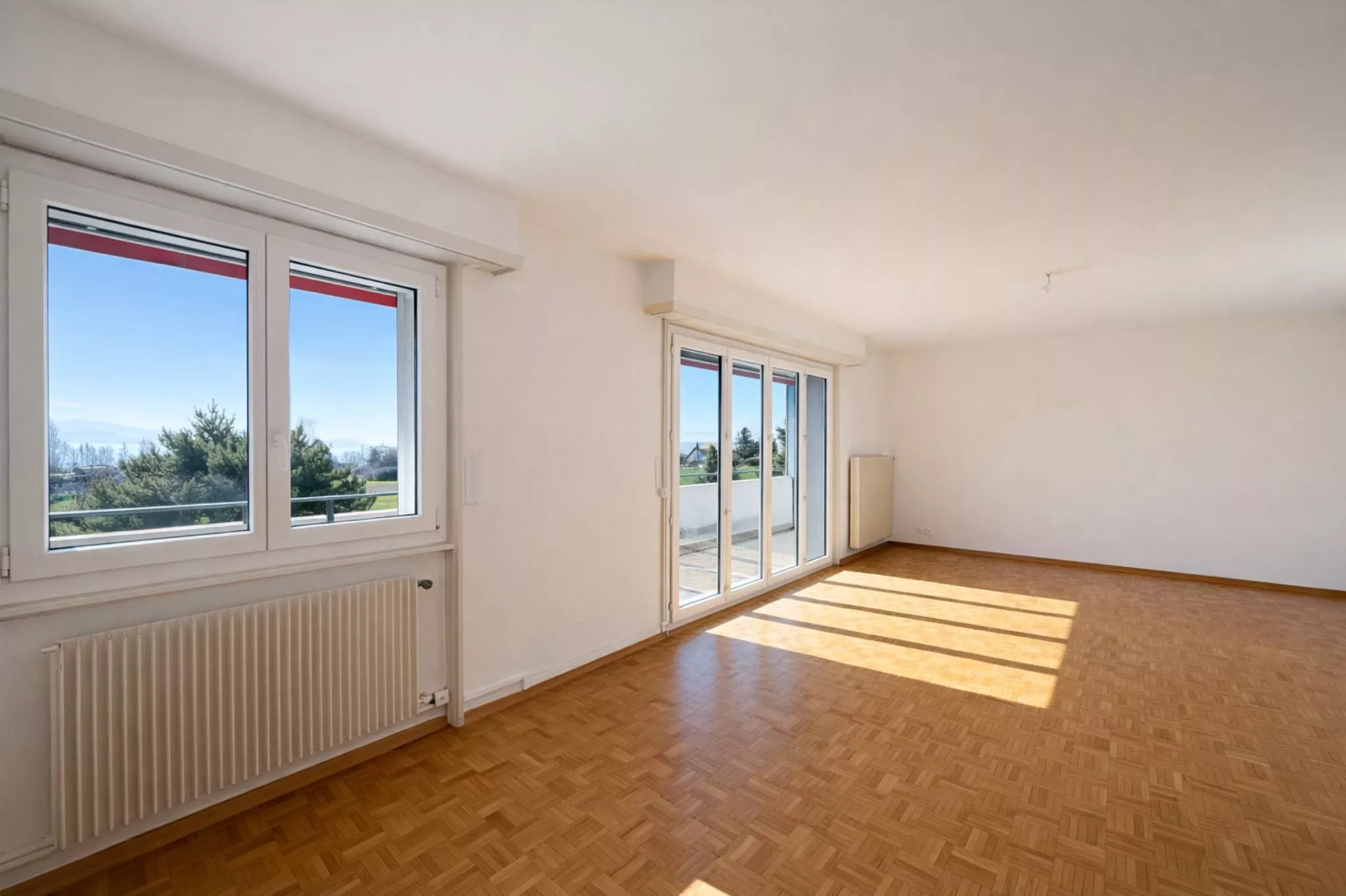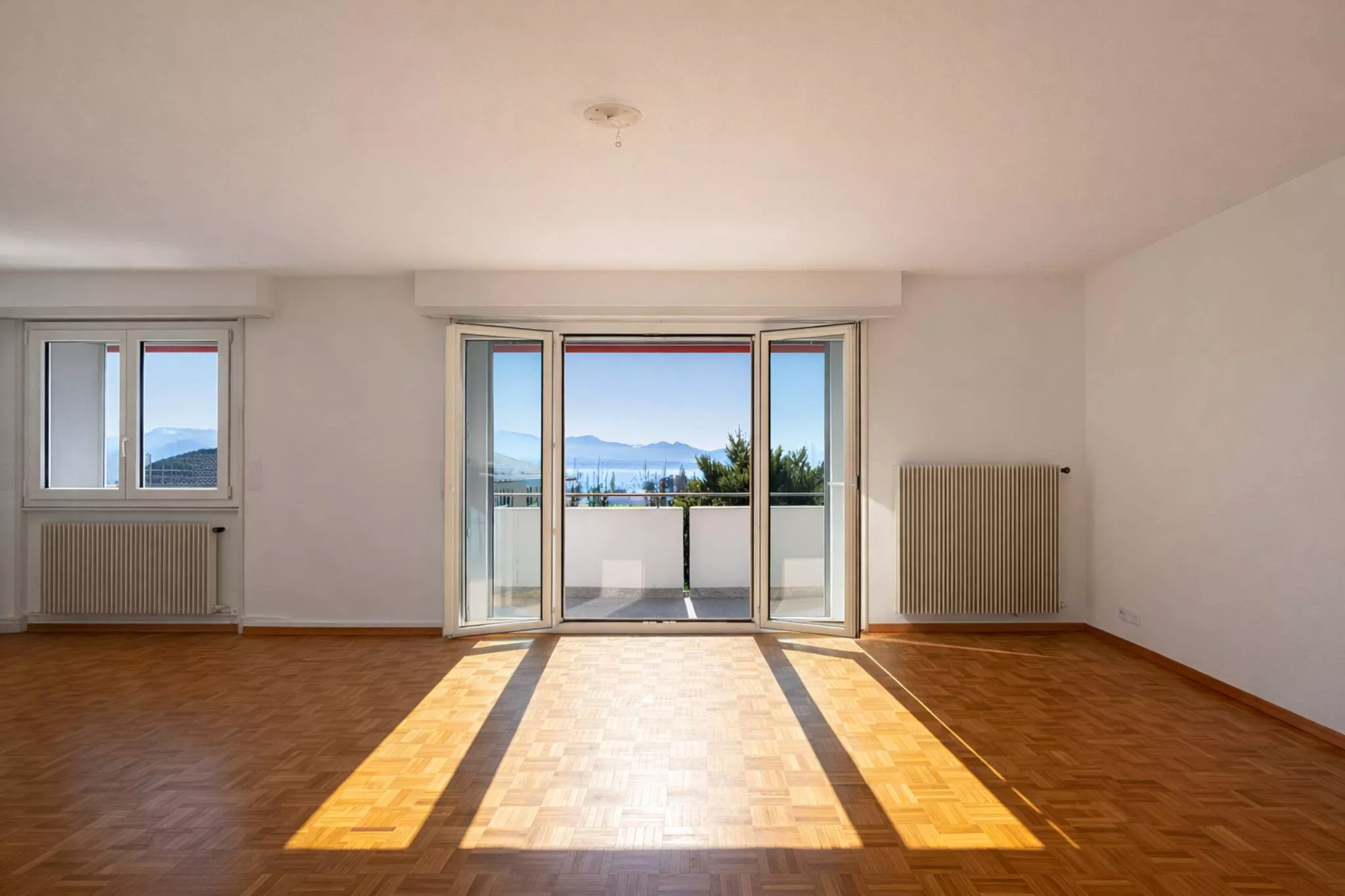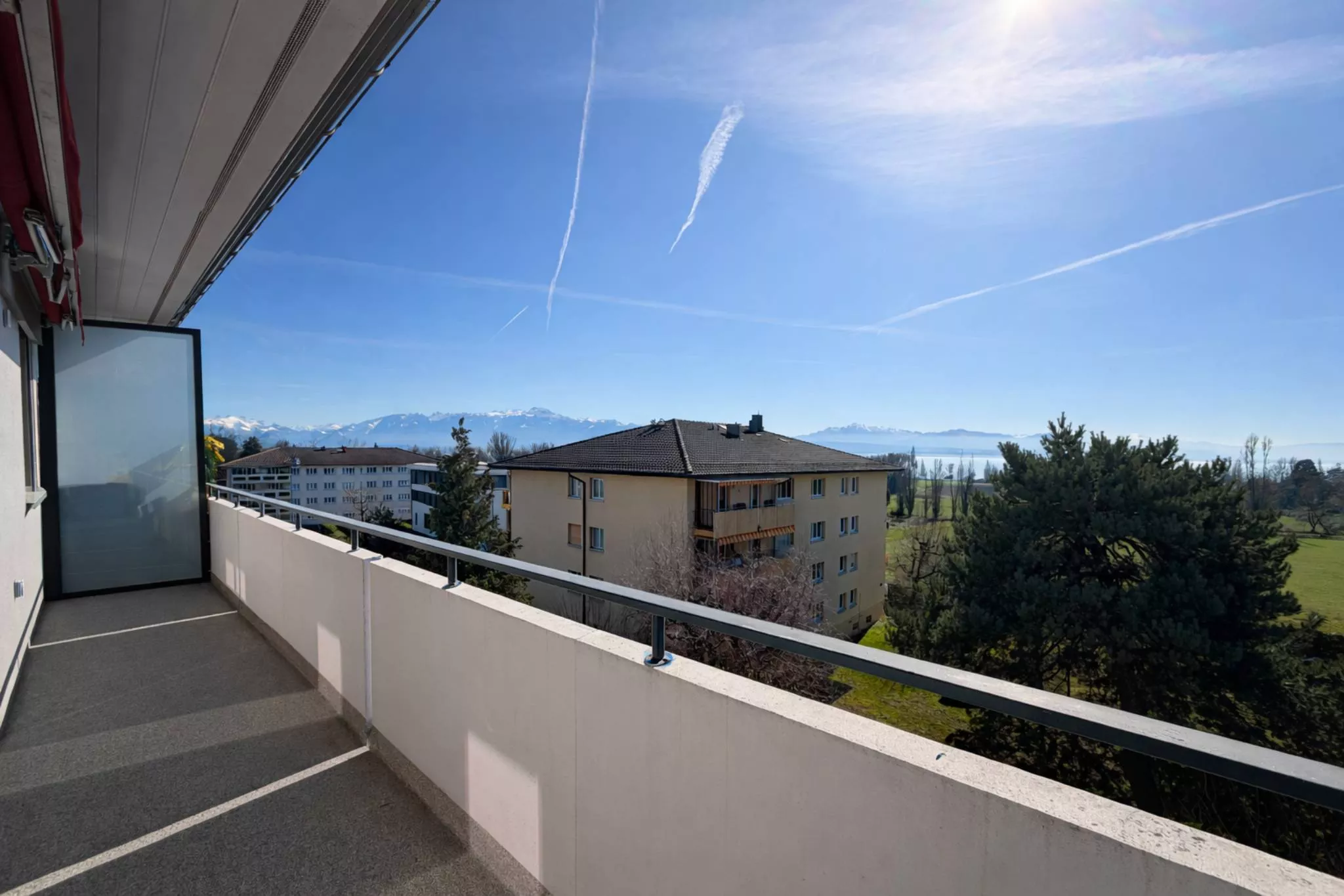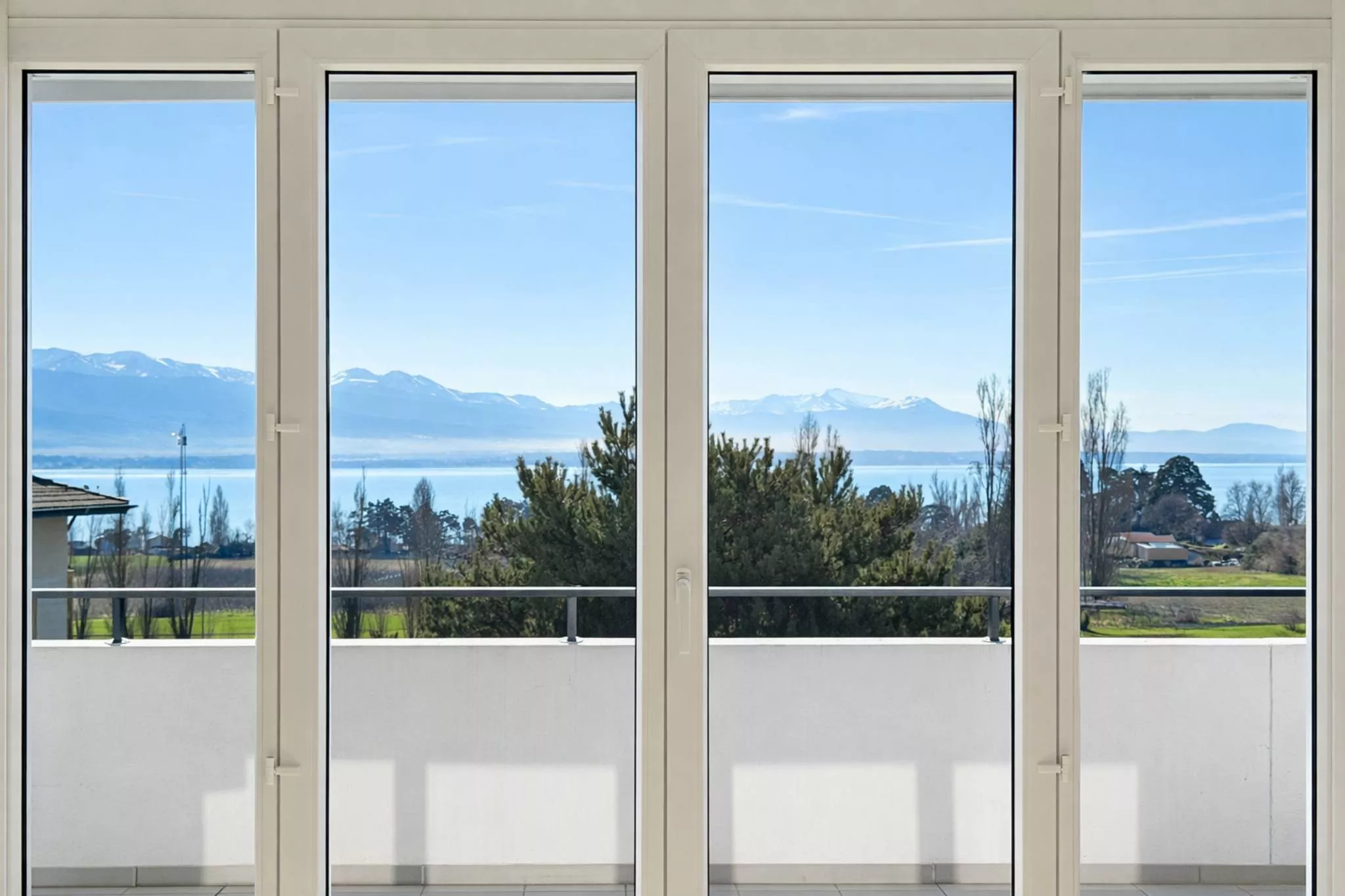 d’une superbe vue sur le lac et les montagnes. Le bâtiment est situé en bordure d’une zone agricole.