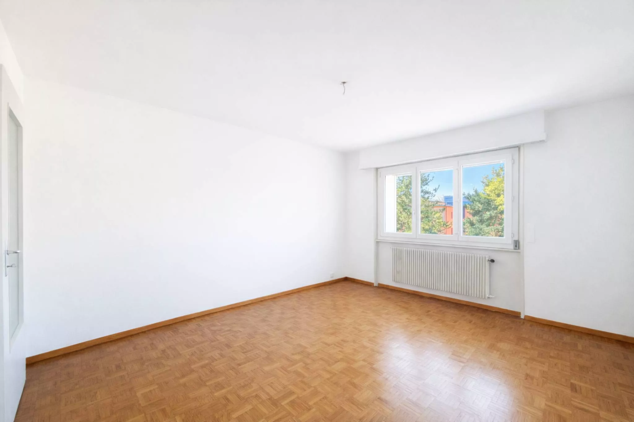 Le logement est composé d’un hall d’entrée avec nombreuses armoires murales, d’un grand séjour avec coin à manger, d’un grand balcon, de 3 chambres à coucher avec parquet et de bonnes dimensions, d’une salle de bains avec baignoire et d’un WC séparé.