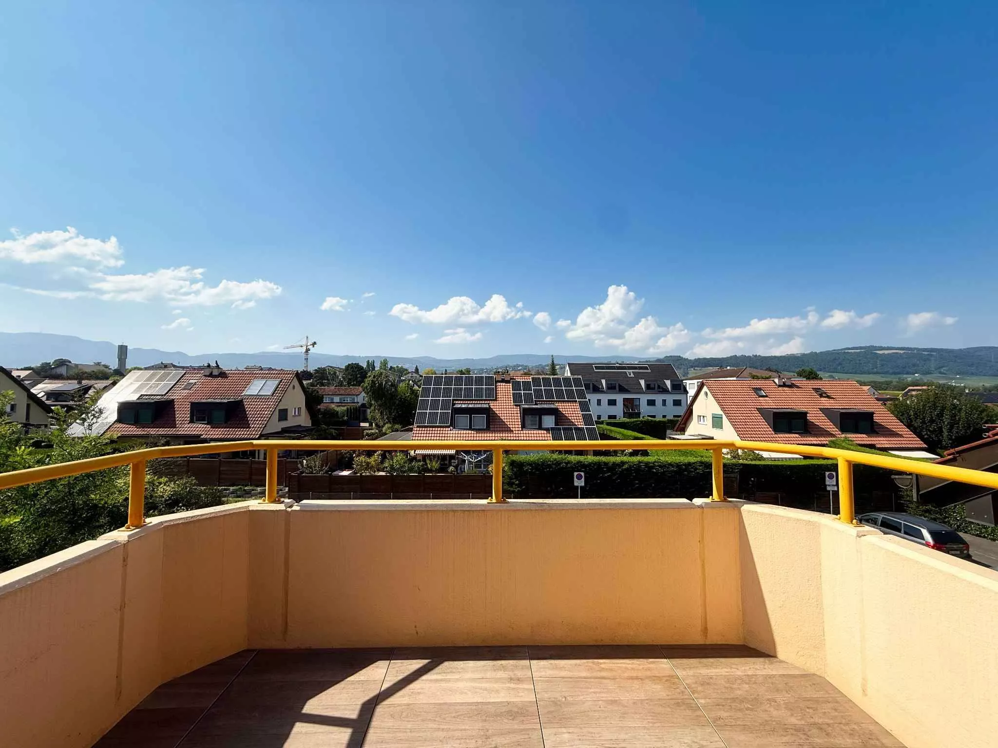 Trois chambres bien proportionnées composent ce niveau, dont l’une bénéficie d’un balcon intimiste avec vue dégagée sur le Jura. Une salle de bains ainsi qu’un WC visiteurs, récemment rénovés, complètent harmonieusement l’ensemble.