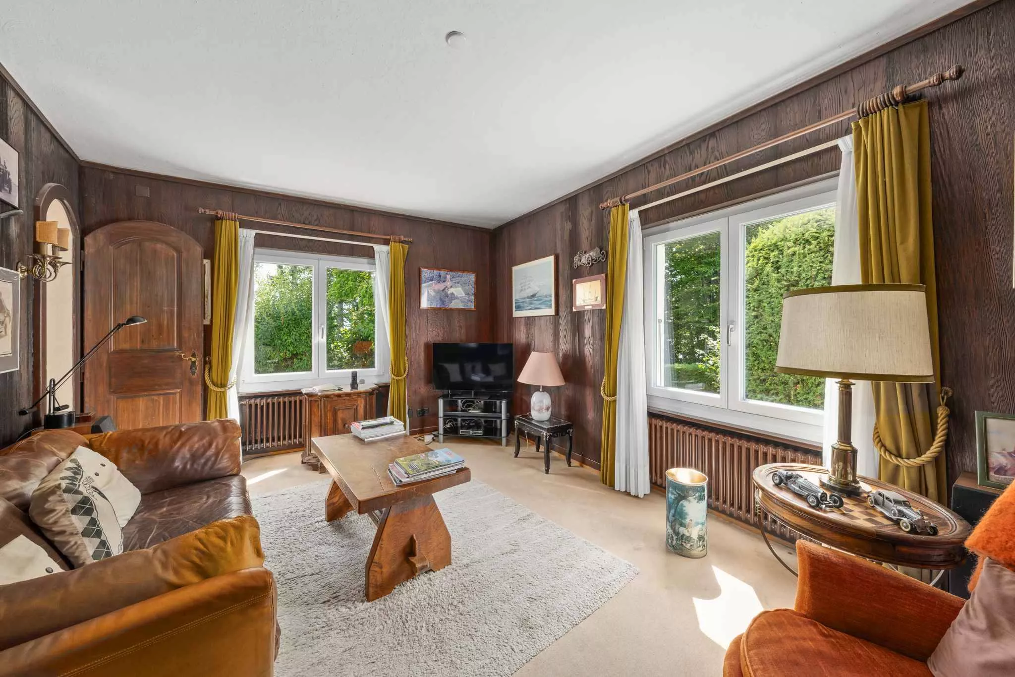 Construite en 1982 et parfaitement entretenue, elle propose une surface habitable d’environ 360 m2, répartie sur trois niveaux. Dès l’entrée, les volumes généreux et la noblesse des matériaux séduisent : parquets en chêne massif, poutres apparentes, sols en pierre de Bourgogne, catelles Valentino… sans oublier des éléments uniques tels que la robinetterie de l’Orient-Express, qui confèrent à cette propriété un cachet authentique et rare.