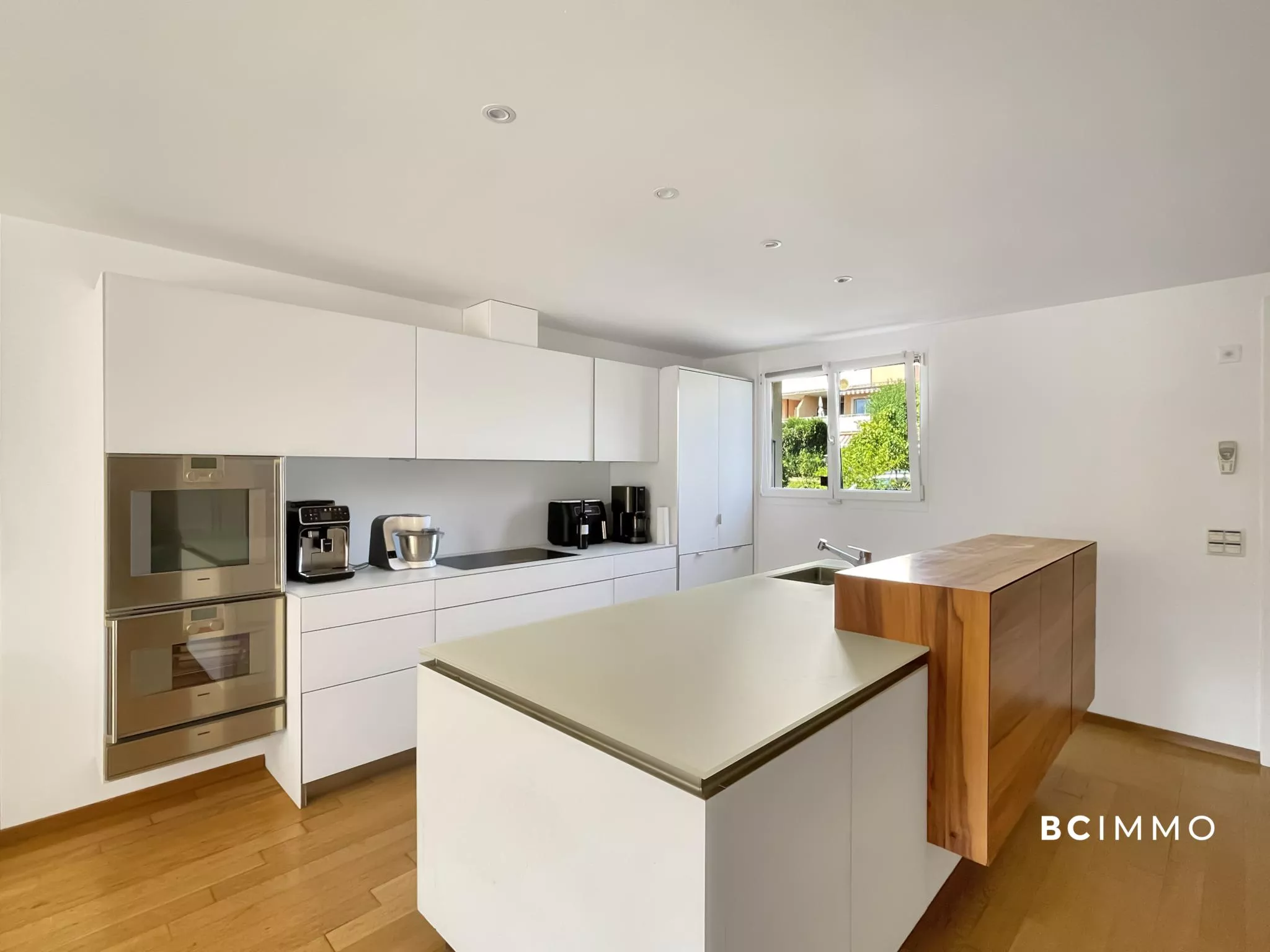 Au rez-de-chaussée, une cuisine ouverte, entièrement rénovée en 2012 et parfaitement équipée, s’ouvre sur l’espace repas et le séjour convivial. Ses larges baies vitrées apportent une belle luminosité à l’espace de vie et permettent un accès direct à la terrasse et au jardin. Un vestiaire et des WC visiteurs complètent ce niveau.