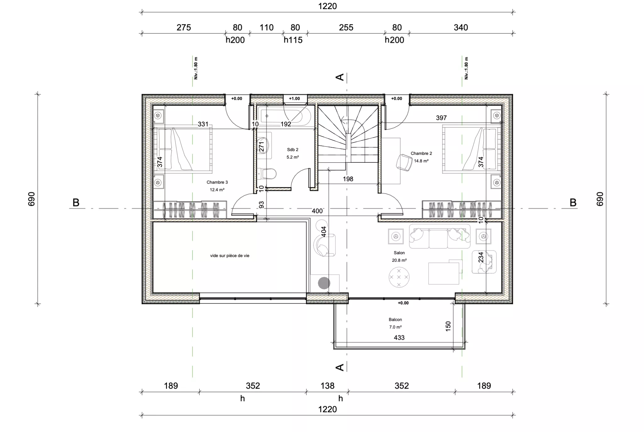 – 1 salon de 20 m2 pouvant être aménagé en bureau