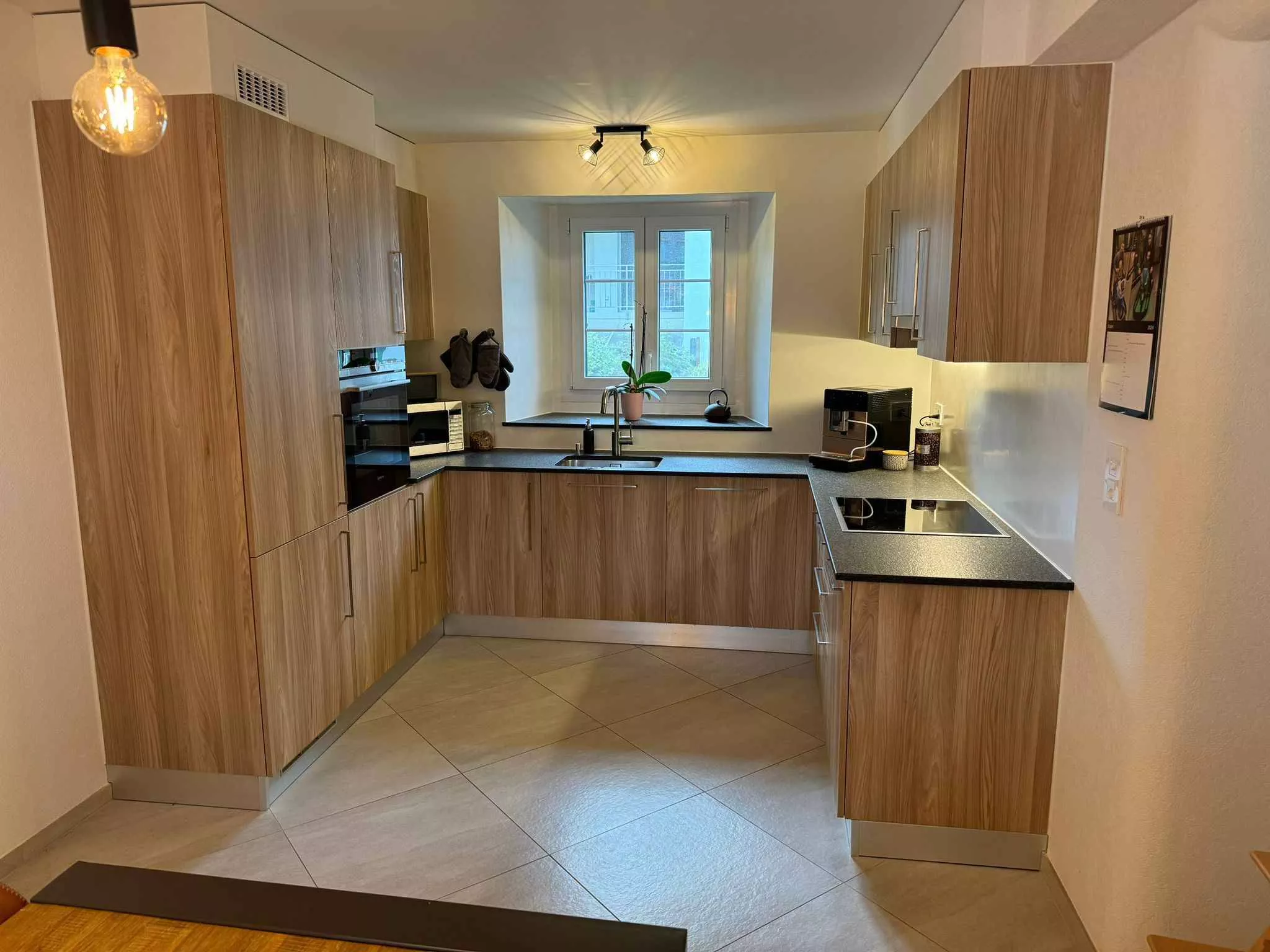 – une cuisine entièrement agencée avec plan de travail en granit et coin à manger