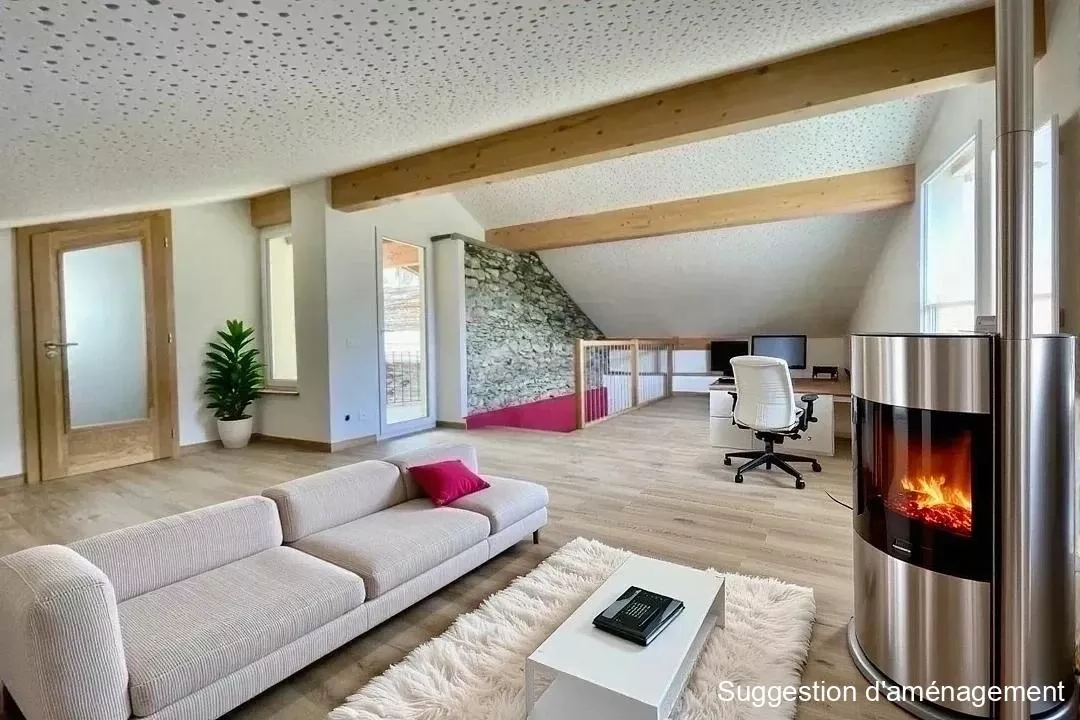Cette maison individuelle lumineuse à Ayent allie confort et modernité. La partie inférieure offre un parking couvert pour deux voitures, une entrée spacieuse a ...